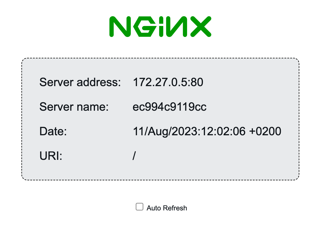 Die Website präsentiert dann die internen Informationen aus dem Docker Netzwerk.